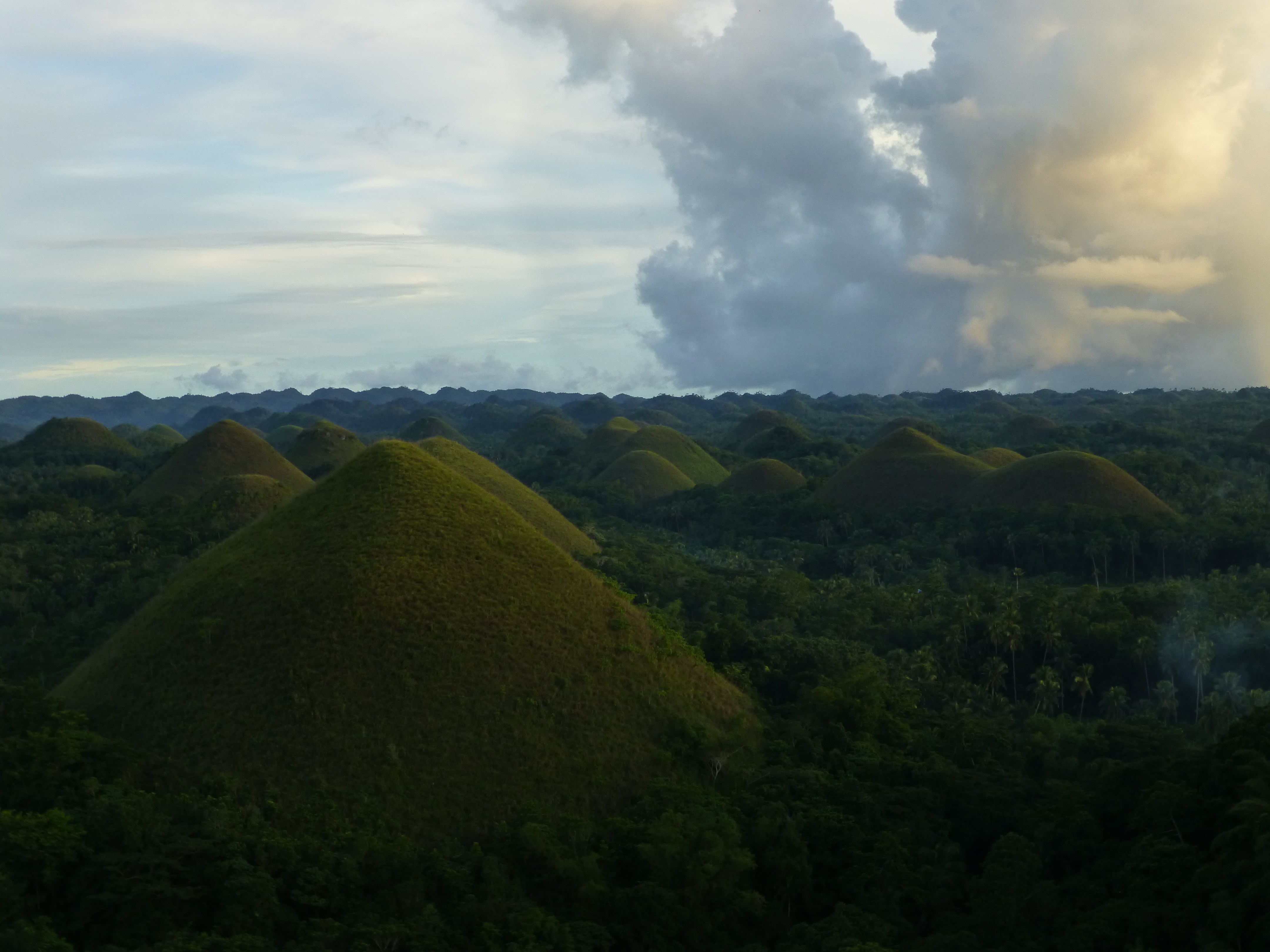 Heute fahren wir quer durch Bohol Richtung der beruehmten Chocolate Hills. Die ersten 13 km bis Trinidad sind flach. Ab Trinidad geht es dann fuer die naechsten 40 km immer weiter hinauf auf die Hochebene um die Stadt Carmen. Richtig steil wird es nie und insgesamt machen wir auf dieser Etappe nur ca. 500 hm. Bei einer Temperatur von ueber 30 Grad und einer Luftfeuchtigkeit um die 85 Prozent eine doch sehr schweisstreibende Angelegenheit. Wir sind aber frueh gestartet und so goennen wir uns immer wieder kurze oder laengere Verschnauf- Trink- und Essenspausen. Der letzte Anstieg ist dann der steilste des ganzen Tages und fuehrt uns hinauf auf einen der ueber 1000 Schoggihuegel in dieser Gegend auf dem sich neben der Aussichtsplattform auch unser Hotel fuer diese Nacht befindet. Den anstrengenden Tag lassen wir bei einer Massage und einen feinen Nachtessen ausklingen.