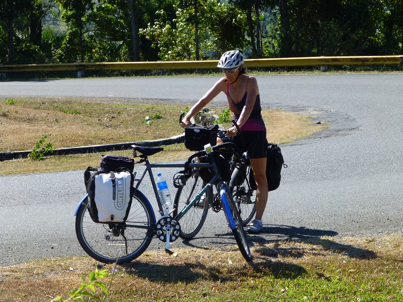 Nach einen black coffee und frischen Pandisal von der Bäckerei geht es heute zeitig los. Unser heutiges Ziel Roxas liegt an der Ostküste von Mindoro und ist ca. 100 km entfernt. Ich erinnere mich von meiner letzten Durchfahrt im 2011 an einen ziemlich steilen Hügel. Um ca. 8 Uhr erreichen wir den Aufstieg, der mittlerweile zementiert ist. Dies erleichtert uns den Aufstieg deutlich und wir ersparen uns so eine lange Schiebepassage. Um 10 Uhr nehmen wir in Bulalacao einen early lunch in South Drive Inn (ein Geheimtipp) ein und bleiben eine ganze Weile an diesem angenehmen Ort. Die Gegend hier im Süden ist spärlich besiedelt aber landschaftlich sehr schön. Nur der berüchtigte Gegenwind (Passatwind) macht uns ein wenig zu schaffen. Nach einer weiteren ausgedehnten Pause in Mansalay erreichen wir gegen 5 Uhr Roxas und pflegen unsere teilweise angeschlagenen Körperteile.